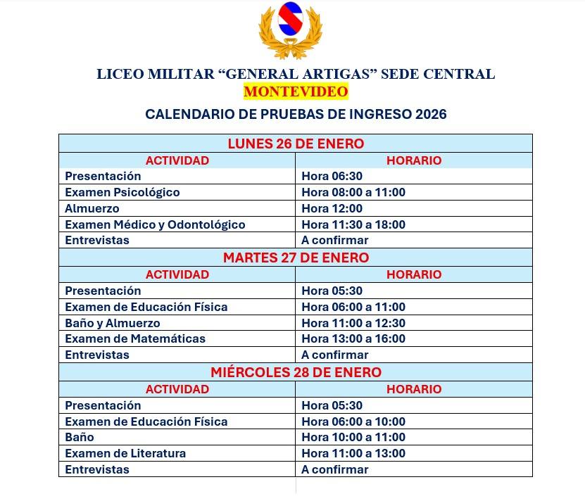 Horario de Inscripciones para Montevideo Lunes a Viernes de 0800 a 1500 hs
